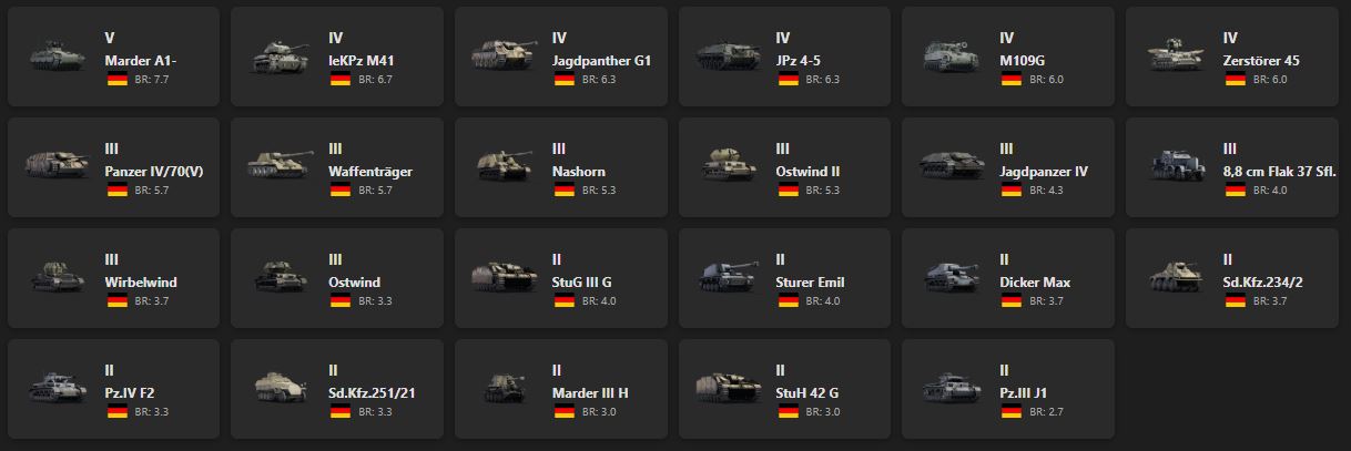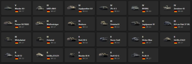 V - 1 Marder A1-, leKPz M41, Jagdpanther G1, JPz 4-5, M109G, Zerstörer 45, Panzer IV/70(V), Waffenträger