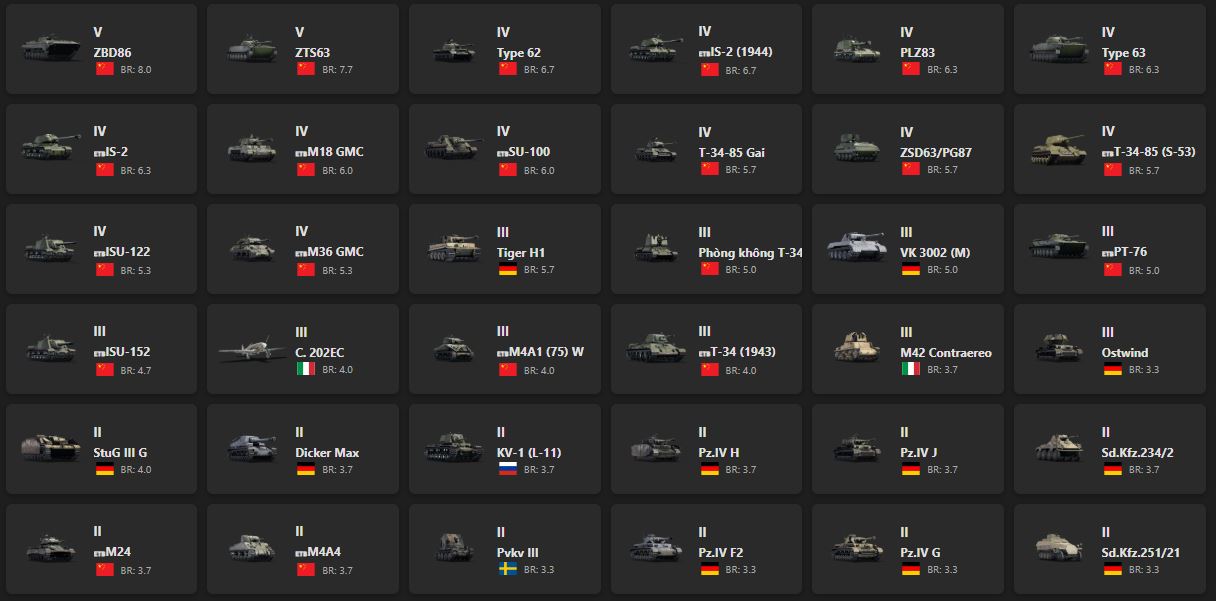 V - 2 ZBD86, ZTS63, Type 62, IS-2 (1944), PLZ83, Type 63, IS-2, M18 GMC, SU-100