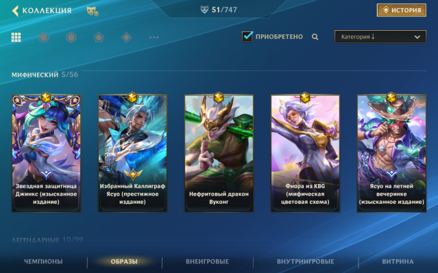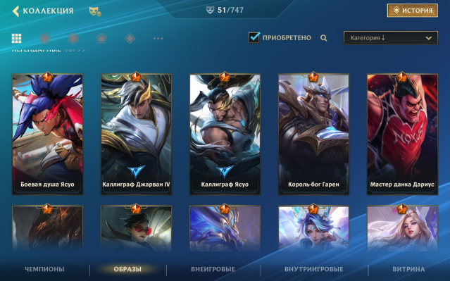 Краткое описание: Топ аккаунт💫 5 мификов💫 10 лег 💫почти все скины на ясуо(все лимитки) возможен обмен