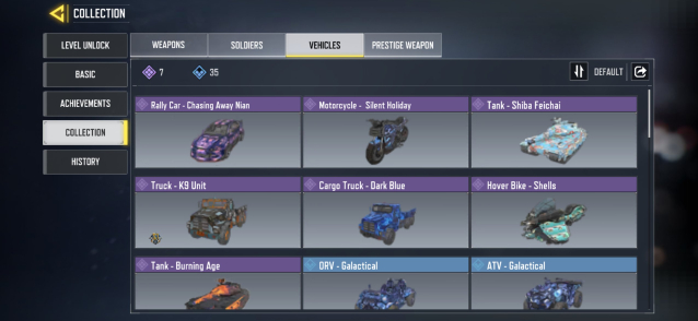 ◘ 🚗 Скины (на транспорт): 7 эпических, 35 редких