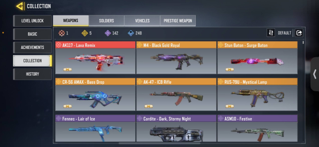 🔫 Skins Gun: 1 Mythic — 5 Legendary — 142 Epic — 248 Rare🔫
