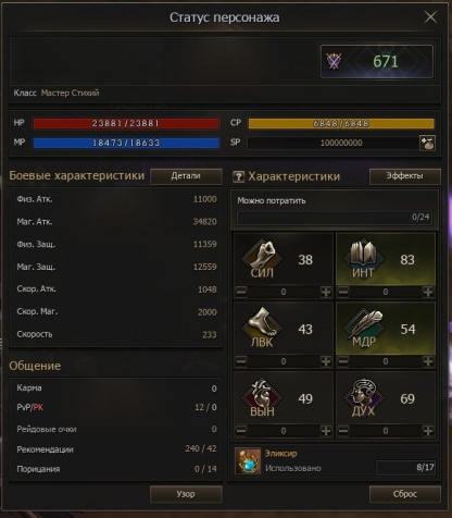 Профессия: Конь ГС 670 Белеф+8, АК+2, Фринта+2, Талик Бая +4, Внутрянка фулл +7-8, Скилы +3