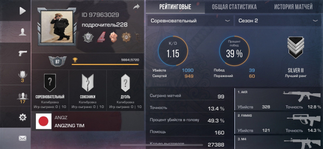 Звание: Без калибровкиКраткое описание: 🎀ID:97963029🎀Аккаунт 2 сезона, есть олд медали🎀Хороший инвентарь🎀Без корней🎀Перепривязка-gmail🎀
