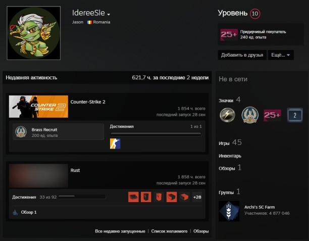 Краткое описание: 【ПЕРСОНАЖ МУЖЧИНА】🔴 RUST 1850 ЧАСОВ ✅ 10 LVL STEAM ✅ 74 СКИНОВ ✅ ДОСТИЖЕНИЯ ✅ ПЕРВАЯ ПОЧТА 10000