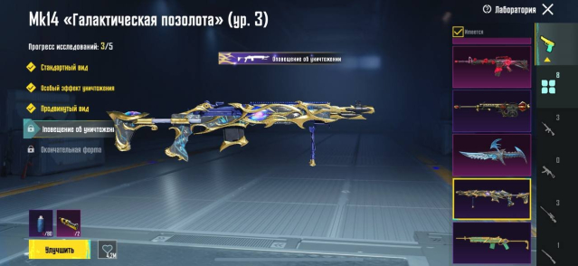M416 Разрывающий рев 3 уровень, много чего на 3 уровне, Mk14 позолота 3 уровень, 8 оружий всего
