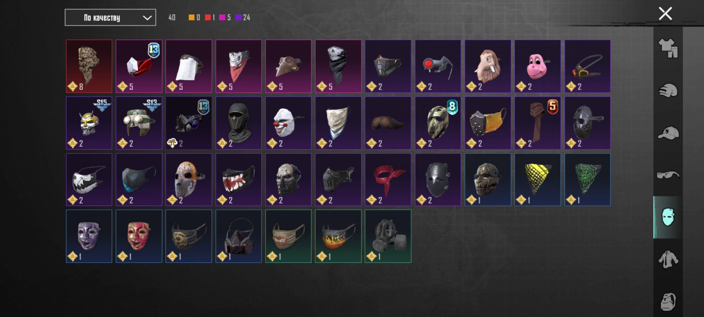 Краткое описание: Олд аккаунт, фулл черный сет, фиолетовая куртка и красная, миф бандана, и 2 эмки