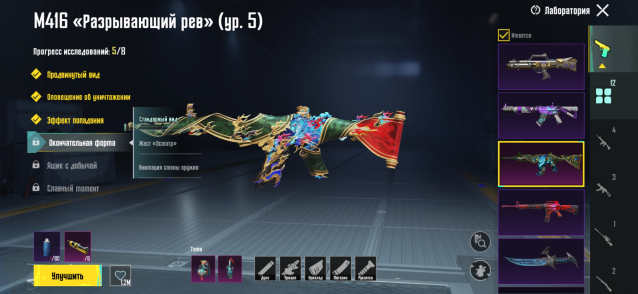 🔸 М416 «Разрывающий рев» — 5 LVL ❗️(Куплены обвесы: 3x, 4x, пламегаситель, глушитель, вертикальная рукоять, уменьшенная рукоять)❗️