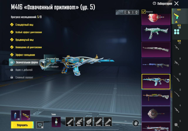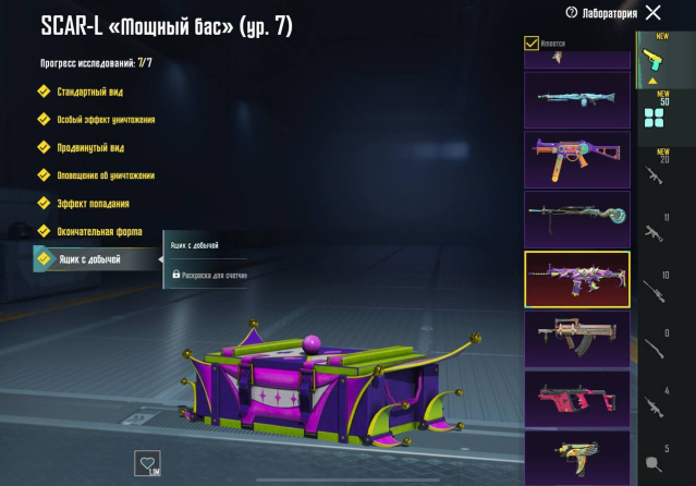 ❗️ SKAR-L «Демон Крови» – Уровень 5 → M416 «Охваченый Приливом» – Уровень 5 → М762 «Сияющая Муза» – Уровень 5 → АКМ «Храм Света И Луны» – Уровень 5 → AUG «Ужас Морских Глубин» – Уровень 5 → UMP «Радужное Жало» – Уровень 4 → UMP «Карнавальные Волны» – Уровень 4 → AMR «Опаляющее Благословение» – Уровень 4 → MGR «Парящий Дракон» – Уровень 4 → AWM «Пурпурный Мститель» – Уровень 4 → UMP45 «Восемь Бит» – Уровень 4 → UMP45 «Опустошитель Душ» – Уровень 4 → Гроза «Лесной Наездник» – Уровень 4 → М762 «8-Битный Пони» – Уровень 4 → М24 «Семь Морей» – Уровень 4 → AWM «Полевой Командир» – Уровень 4
