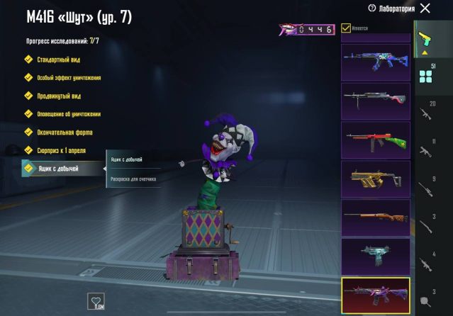 ❗️ Vector «Золотой Граф» – Уровень 4 → AUG «Ужас Морских Глубин» – Уровень 5 → М762 «8-Битный Пони» – Уровень 4 → SKAR-L «Мощный Бас» – Уровень 4 → SKAR-L «Сияние Безмятежности» – Уровень 4 → UMP45 «Опустошитель Душ» – Уровень 4 → ПП-19 «Бизон» «Призрачный Код» – Уровень 4 → M762 «Резьба По Кости» – Уровень 4 → DBS «Дерзкий Леопард» – Уровень 3 → SLR «Мелодия Морских Грез» – Уровень 3 → UZI «Дух-Хранитель» – Уровень 3 → Томагавк «Огненный Годзилла» – Уровень 3 → SCAR-L «Заряд Вкуса» – Уровень 3 → МGL «Магнитный Импульс» – Уровень 3