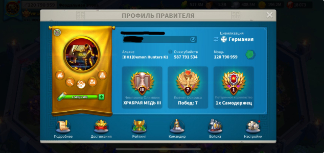 Подробное описание: 120 Миллионов мощи, VIP14 не донатный аккаунт VIP делал своими силами. 6 командиров с экспертным навыков ещё 1 на 555 и СянЮй на 55 потому что он у меня полевой и его дальше можно не качать. Ресурсов не очень много. Ускорений нет, были потрачены на пик мощи недавно. Аккаунт личный 5 лет игры. Продаю потому что надоела игра, если передумаю отменю продажу)
