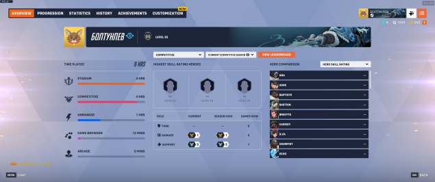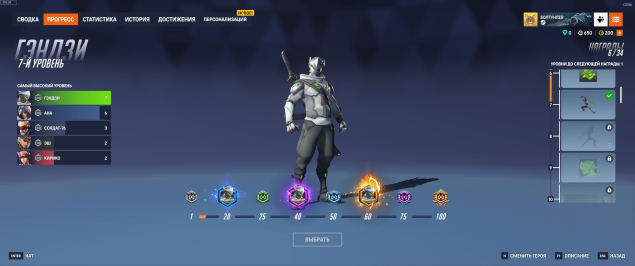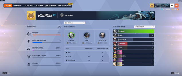 🈵Любимые герои: Гэдзи — 7 уровень, Ана — 6 уровень, Солдат76 — 3 уровень.