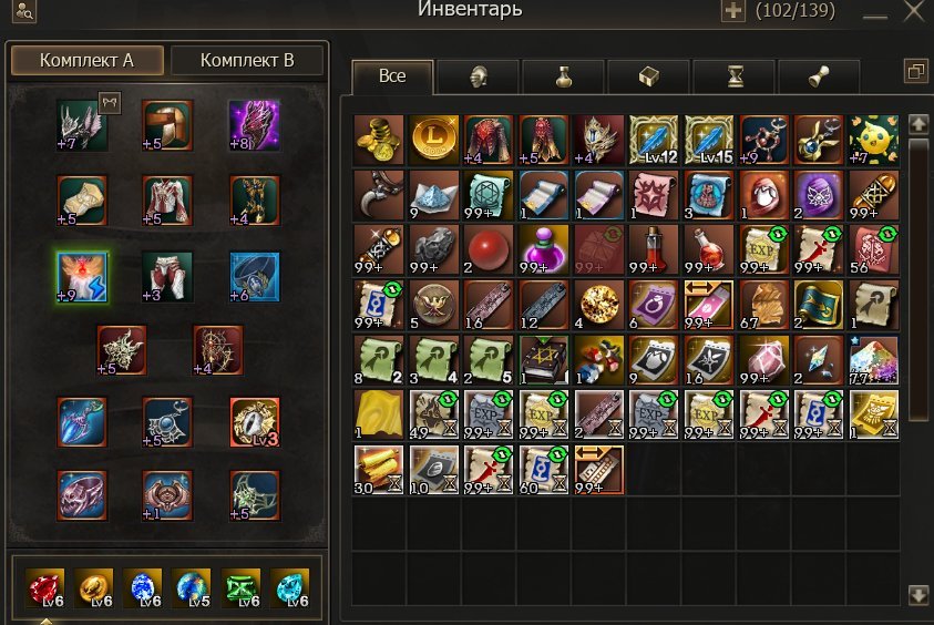 Баюм +1(Печать), Орфен*Печать), Ак(Печать)Бижа +5, Кольцо паагрио +5, Серьга ева +5, Охотника +9.