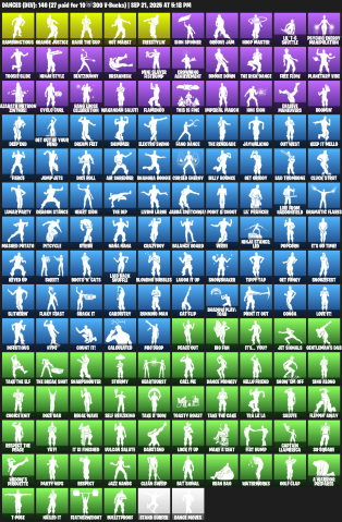 Краткое описание: ✨🎮 159 скинов · 33 платных + 153 кирки + 146 танцев · 27 платных + 142 дельтаплана ✨