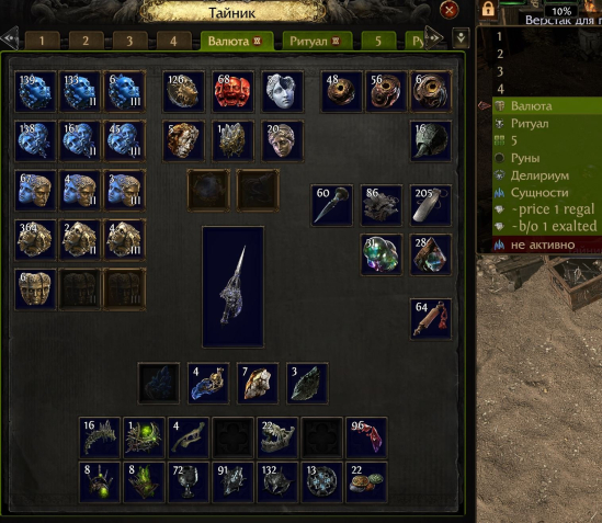 ✅Куплен набор Lord of Ogham Supporter Pack (взяты 1 большая прем вкладка, 2 премиум вкладки, 6 торговых вкладок, вкладки ритуала, валюты, рун, делириума и 2 сущностей (случайно купил обе, я думаю через саппорт можно одну отменить и взять что-нибудь другое)