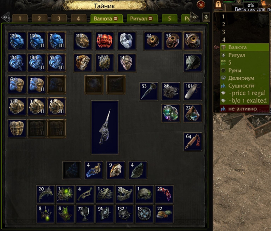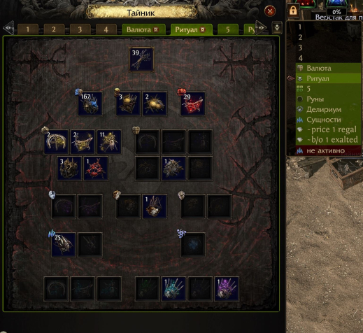 ✅Куплен набор Lord of Ogham Supporter Pack (взяты 1 большая прем вкладка, 2 премиум вкладки, 6 торговых вкладок, вкладки ритуала, валюты, рун, делириума и 2 сущностей (случайно купил обе, я думаю через саппорт можно одну отменить и взять что-нибудь другое)