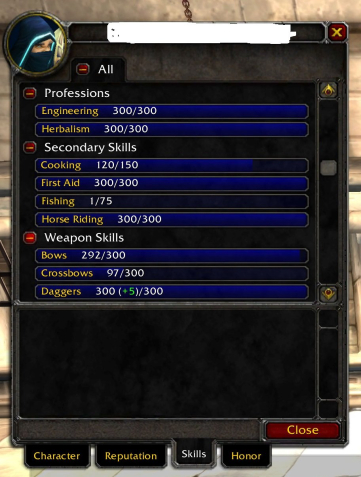 300-300 профы прокачены Первая помощь, Травничество, Инжа и Взлом замков.