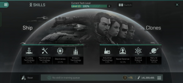 Skills trained- Battleship (Large Lasers), Dreadnaught (Cannons), Carrier, Trading/Accounting, Planetology
