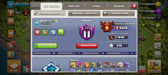 Уровень Ратуши: 13Краткое описание: ⚡ Быстрая ВЫДАЧА 🔵 С ПОЧТОЙ 🔵 ФУЛЛ 12 ТХ 🔵 ГЕРОИ 56/57/40/25/3 🔵 2 СКИНА ГЕРОЕВ 🔵 150 МЕДАЛЕЙ ЛВК 🔵