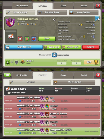 Краткое описание: Clan Level 13 | Name: WARRIOR WITHIN || Most Rare Name || Good War Log Win 183 / Loss 131