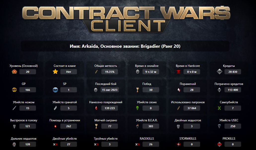 ДАННЫЕ ИДУТ ОТ АККАУНТА CONTRACTWARSGAME.COM
