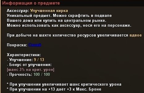 Подробное описание: В наличии имеется улучшенная кирка. 9+ из 9/13. По всем интересующийся вопросам — в личные сообщения.