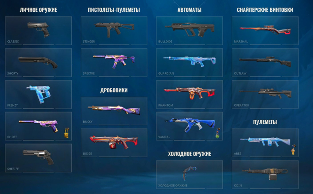 🟩 Скины: Vandal «ИОН», Керамбит «RGX 11Z PRO», Phantom «ИНТЕРХЕЛЬМ», Judge «ИНТЕРХЕЛЬМ», Bucky «ФЛЕР», Ghost «ФЛЕР», Spectre «ФЛЕР», Marhsal «ИНТЕРХЕЛЬМ», Ares «Футуризм».
