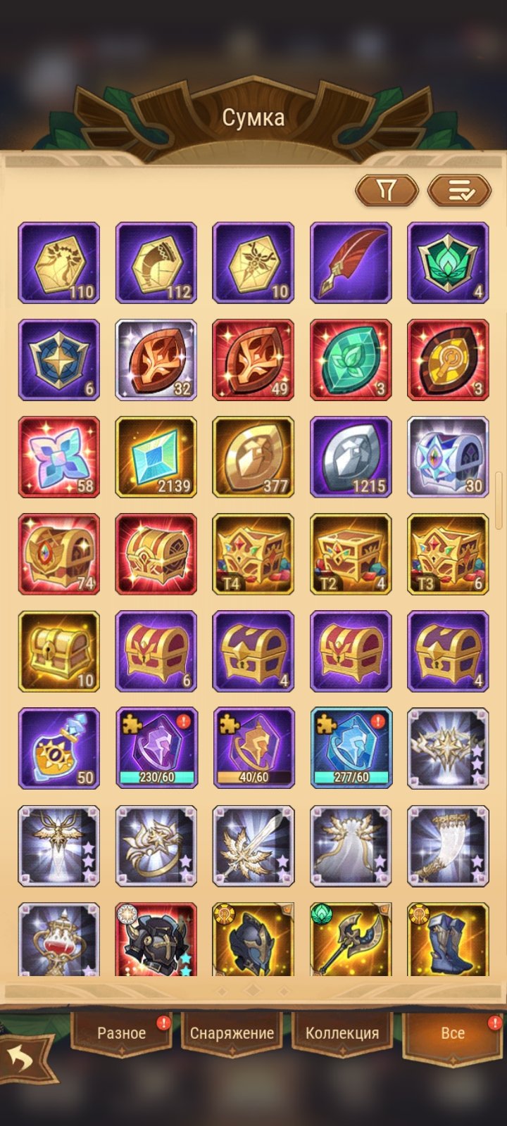 В инвентаре имеются сундучки с камнями Т4х1, Т3х5, Т2х2.