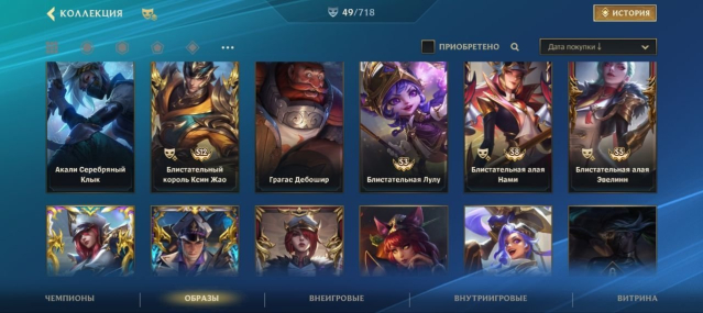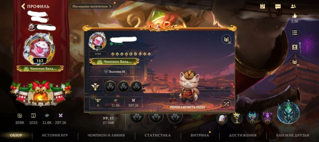 Краткое описание: 163 ур., 3.2к матчей, 3.9к лайков, 89/122 чемп., 48/663 образов