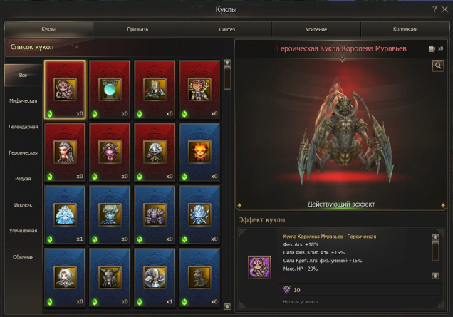 Синие куклы: Ферион, Антарас, Орфен, Анаким, Закен, Галаксия, все стихийные + Тирон. Недействующие синие: Кора, Ван Холтер
