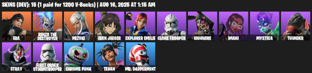Краткое описание: 💜Быстрая ВЫДАЧА💜FORTNITE💜15 СКИНОВ💜Era💜Renzo the Destroyer💜| Mizuki |💜Eren Jaeger |💜Tegan💜ПОЛНЫЙ ДОСТУП💜