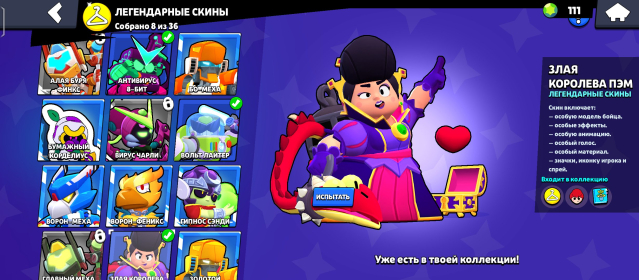 131 скин на 13500 гемов, из них 8 легендарных скинов + гиперзарядный