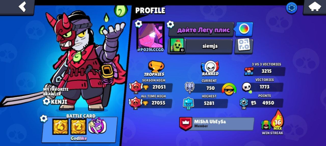 Краткое описание: 🏆𝟐𝟕𝟎𝟓𝟏🏆👥𝟖𝟗/𝟗𝟓👥🎫𝟒 БП🎫🎴CURSED КЕНДЗИ + ГИПЕР ПАК🎴🏅𝟐𝟏𝟕 СКИНА (НА 𝟏𝟗K GEMS)🏅⚔️17 x 11 СИЛ⚔️