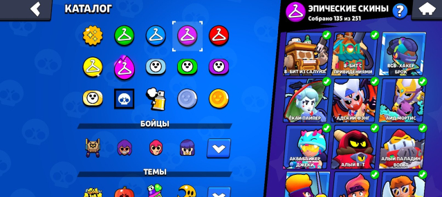 На аккаунте множество эксклюзивных скинов, таких как героиня биби, помощница пенни, 8бит из салуна, вирусный 8бит, аквабайкер Джеки, волшебник Байрон, контрабандистка пенни, режиссёр базз, звездная Шелли, сантамайк и др.