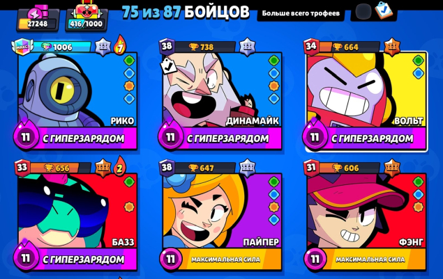 🔥☄️💜Олд Аккаунт(старые лимитные скины/вещи)💜☄️🔥, 27298 кубков, 75 бравлеров