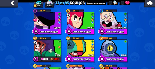 ✔️ 73/95 🔥 21531🏆 | 2 ТИТУЛА 👍 2 ГИПЕРЗАРЯДНЫХ СКИНА 💥 РОБО-МАЙК 🤖, 21531 кубков, 73 бравлеров