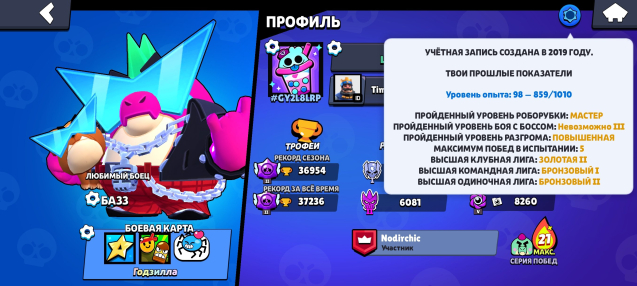 🟪🏆36954🏆 🟪【91/94】🟪 ПЛОХИШ БАЗЗ🟪ЖИРНЫЙ АКК С 2019 ГОДА🟪 СЁРФЕР КАРЛ🟪, 36954 кубков, 91 бравлеров