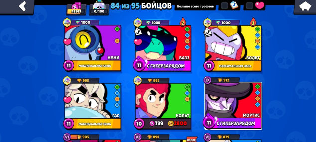 [ 𝗕𝗥𝗔𝗪𝗟 𝗦𝗧𝗔𝗥𝗦 ] ❥︎🏆42.580🏆【⛔️84/95⛔️】【🎁+260 СКИНОВ🎁】【🟢Быстрая ВЫДАЧА🟢】🔴ПЕРЕПРИВЯЗКА🔴, 42589 кубков, 84 бравлеров