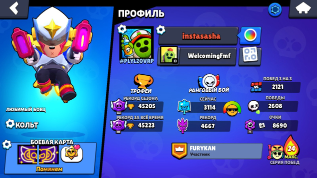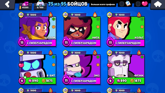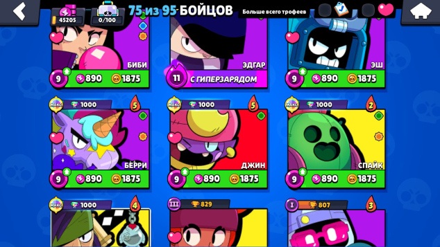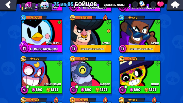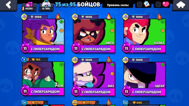 🌳Быстрая ВЫДАЧА🌳45205🏆75/94👤113.000 ЗОЛОТА🟡670 ГЕМОВ🏅35.000 БЛИНГОВ👤13 МАХ РАНГОВ🏅9-11 СИЛ🔥8 ЛЕГ🔥, 45205 кубков, 75 бравлеров