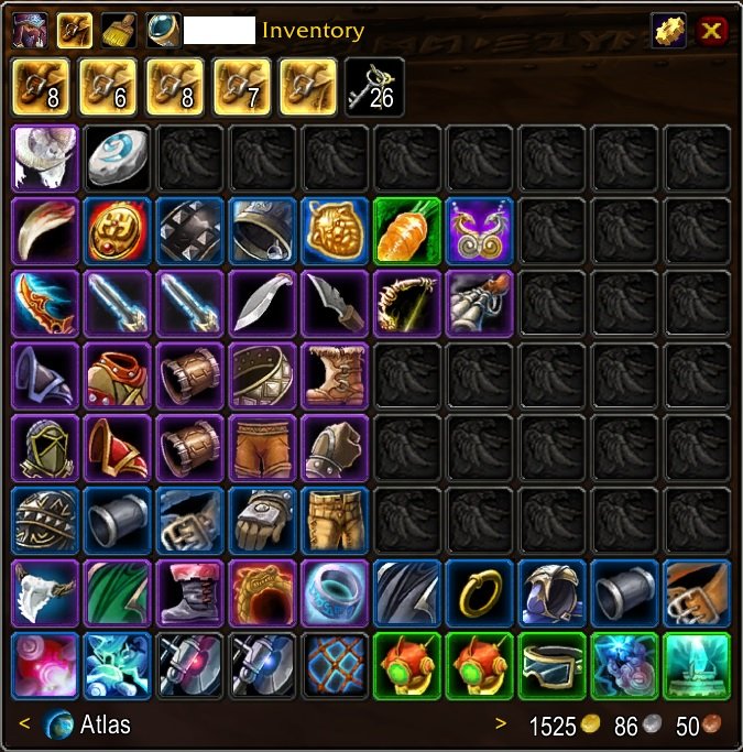 100% маунт – Swift Gray Ram. 5 16-слотовых сумок. На аккаунте имеется около 1000 золота на покупку реагентов и химии для PVE и PVP, этого хватит надолго. Вам не нужно покупать золото рискуя получить бан.