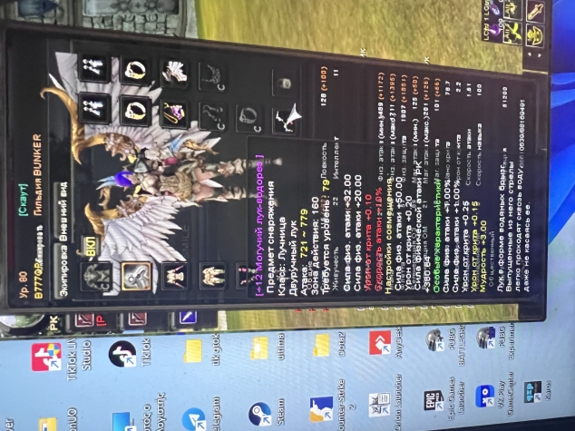Подробное описание: Продам сет на лука для парика 61-71 к нему еще лук 70+10!045 с вип и черепом арены, 2 камня по 50 физы есть