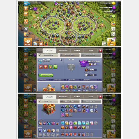 Уровень Ратуши: 16Краткое описание: 200💠TH16💠HERO:(53,70,46,20) ✦ 1k MEDALS ✦ 4x Epic EQ. ✦ High Old TREES ✦ 1x Scenery