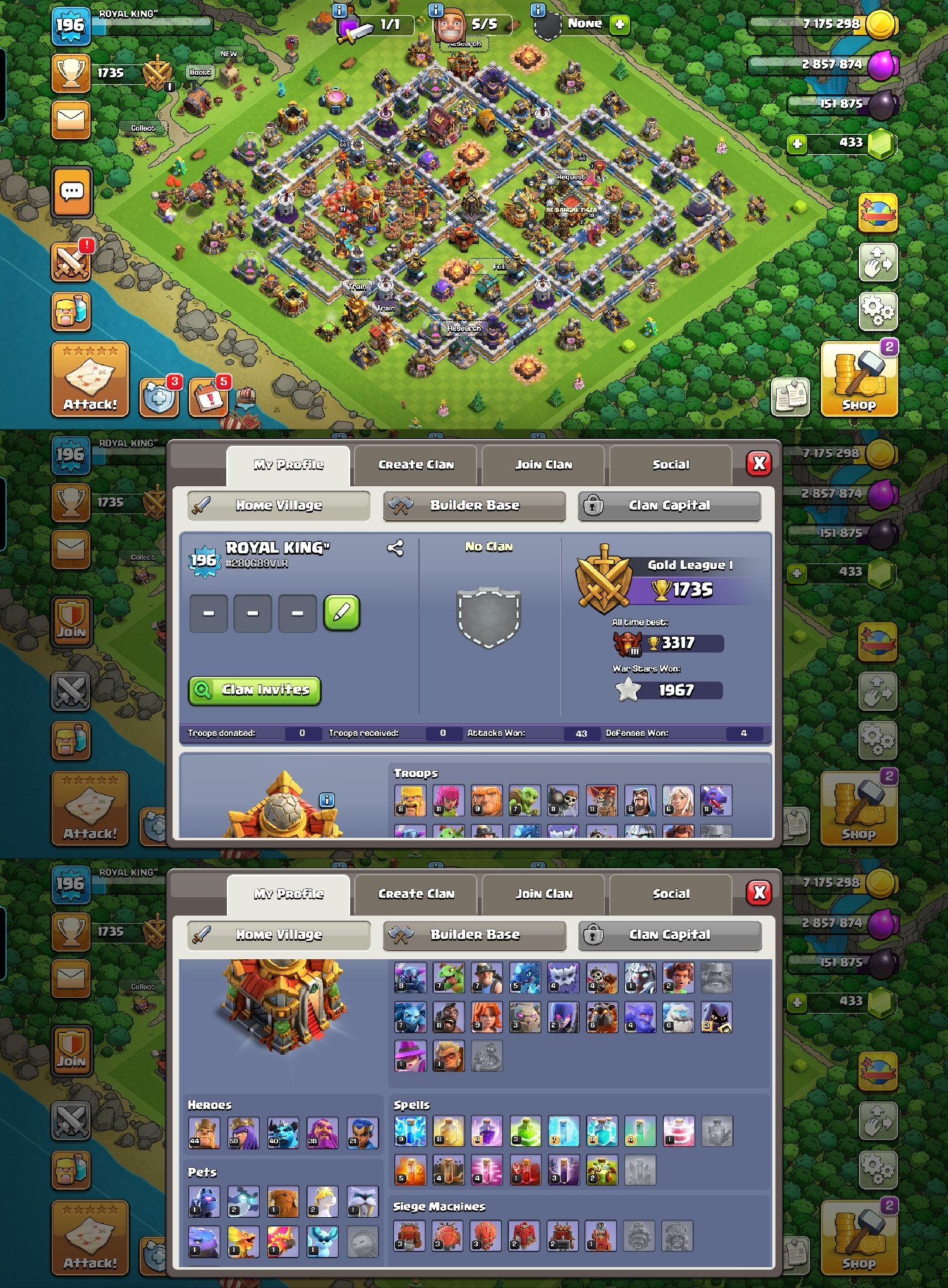 Уровень Ратуши: 16Краткое описание: 🔴267⏩BEST Th16 ✦ [SB,EB]~2x~EPIC EQ.✦ Hero(40,50,20,10) ✦ High Magic Items ✦ NC FREE