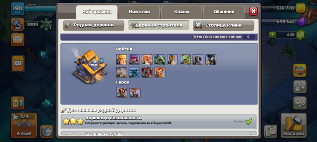 Уровень Ратуши: 17Краткое описание: 🔥🔥🔥【11 ЕПИК СНАРЯГ】【РАТУША 17 ДЕФФ】【ГЕРОИ-58/36/43/27/33】 【190 LVL】🔥🔥🔥 ✅Почта Gmail✅ 🔐Полный доступ🔐