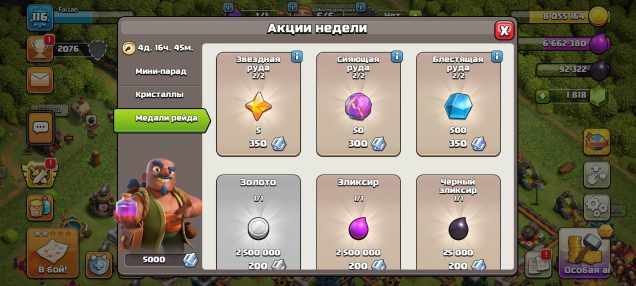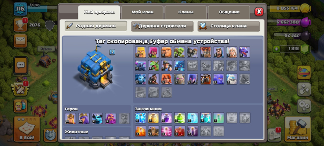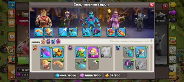 Уровень Ратуши: 12Краткое описание: ❤🔥 1800 ГЕМОВ, ГЕРОИ 43/35/21/8, 5 СТРОИТЕЛЕЙ, 5000 МЕДАЛЕЙ РЕЙДА, СКИН, ЭПИК СНАРЯГА❤🔥