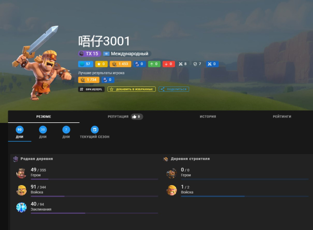вот пример www.clashofstats.com/ru/players/3001-G9VJQ2QYL/summary