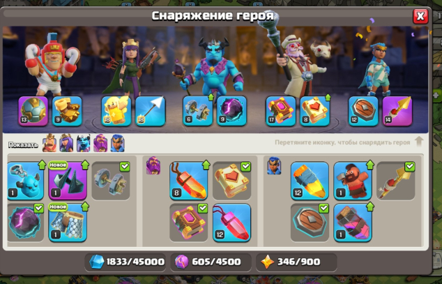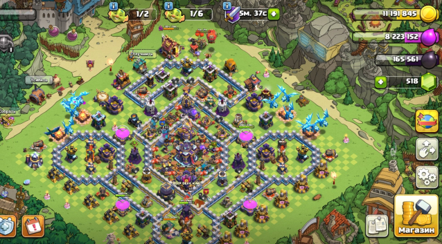 Уровень Ратуши: 15Краткое описание: 15тх, 153 lvl, герои 50/62/48/43/20 5 оформлений +6 скинов