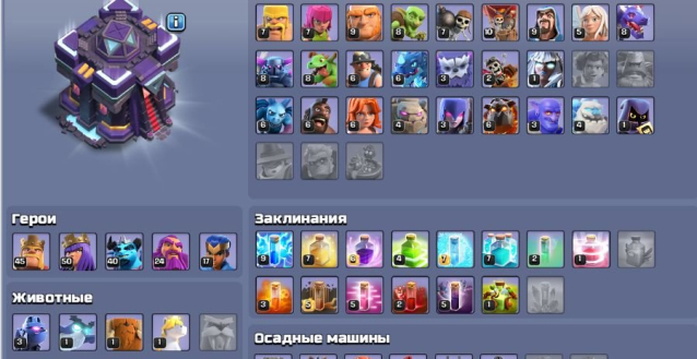 Уровень Ратуши: 15Краткое описание: 🟨🔥🔥【 TH 15 】⚡174 LVL ⚡💎 1504 Гемов 💎【ГЕРОИ -45|50|40|24|17 】⚡2 скина⚡ 🟨🔥🔥
