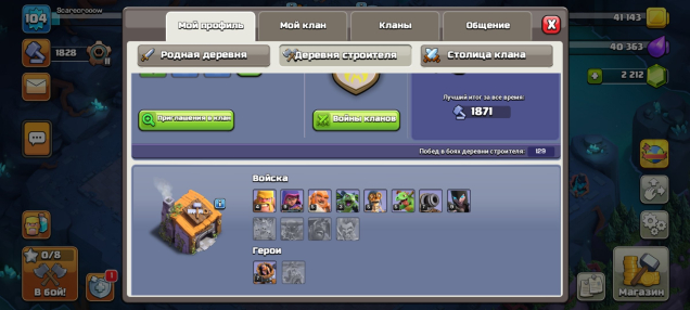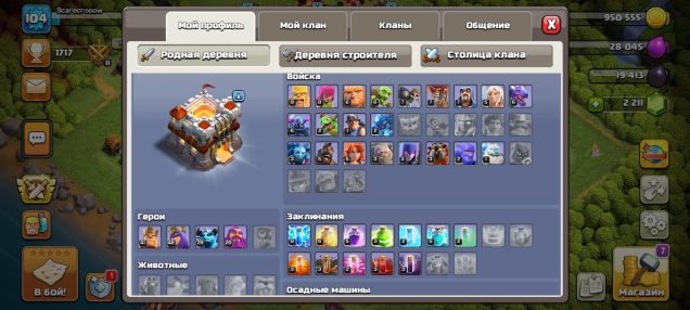 Уровень Ратуши: 11Краткое описание: 🟥Акк 11тх фул95% 1700 кубков, герои 41/48/29/20 Перепривязка можно через 14дней 104ур 2200гемов🟥