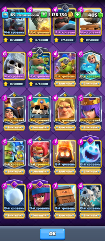 Подробное описание: Продаю аккаунт клешь рояль, есть эмодзи за 20 побед крл, финиш в глобальном турнире #918, больше половина фул карт, остальные добить очками