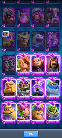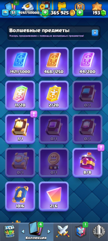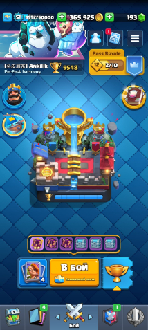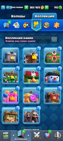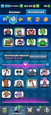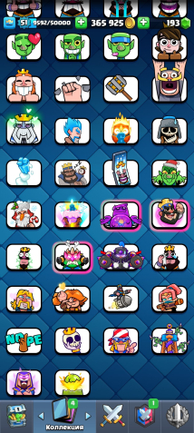 Подробное описание: 365к золота🪙,193 крисстала 💎, все чемпионы🔥,56 эмодзи🥸,11 эволюций 🧬, 11 скинов на башню🏰, есть баннеры🔥